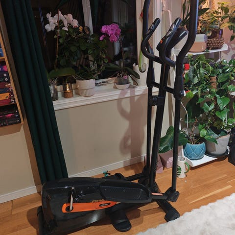 Kettler crosstrainer med digital skjerm. Treningsapparat for kardiovaskulær trening med håndtak og skjerm for måling av treningsdata.