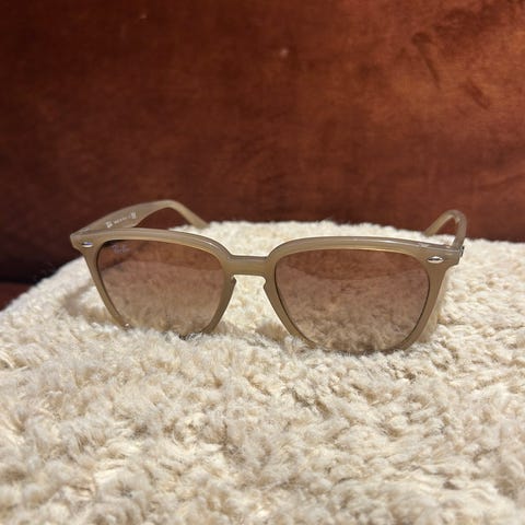 Brillene er godt brukt; riper i glasset , logene er slitt vekk på stengene og etui har en skade. Fortsatt mye livi igjen, selges derfor rimelig. Se bilder