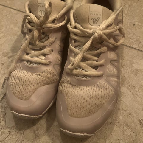 Dette er et par Varsity Rise 2 cheerleadingsko i hvitt.