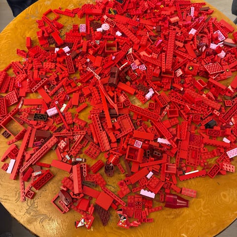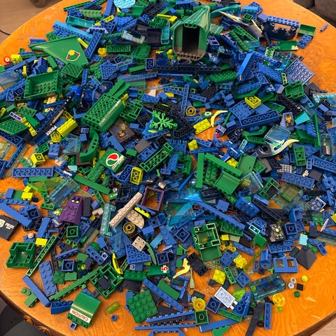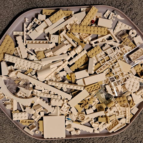 Ca 2,5 liter LEGO byggeklosser i ulike brune og beige farger. Inneholder et variert utvalg av små og mellomstore klosser i forskjellige former og størrelser. Egnet for bygging og kreativ lek.