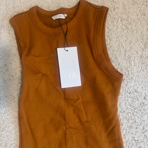 Zara - grønn top, str. L, passer bedre til M, bredde fra armhule til armhule ca 35-45 cm x 2, lengde 60 cm. Viskose 80%, nylon 20%. Strekker seg godt.