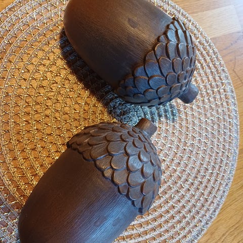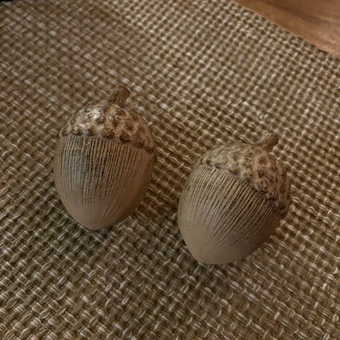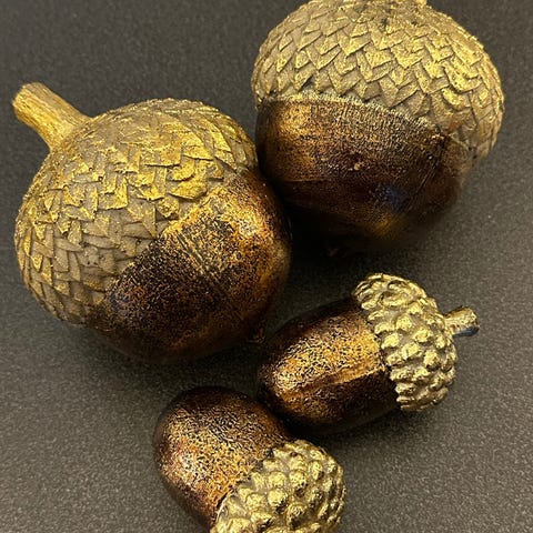 4 sølvfargede eikenøtter til dekorasjon