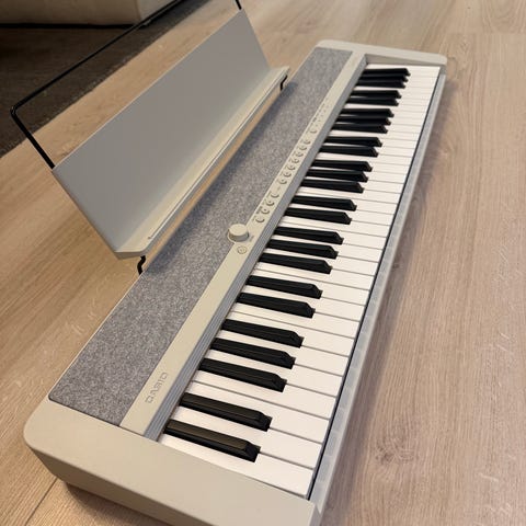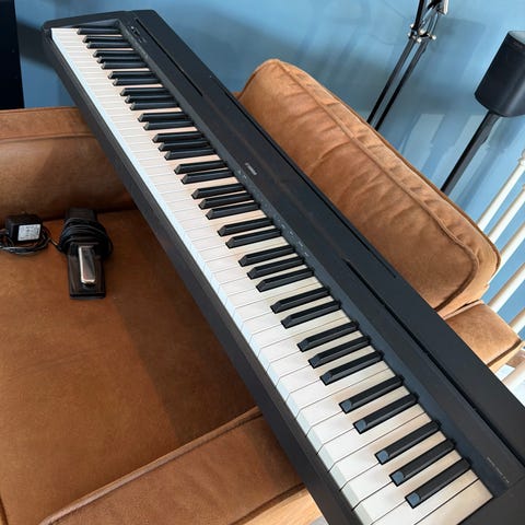 Yamaha P-45 digital piano med 88 tangenter. Instrumentet har et kompakt design og leveres med stativ og sustain-pedal. Passer til ulike musikksjangre og øvingsbehov. Prisen kan justeres. Kjøpt nytt for 4000kr
