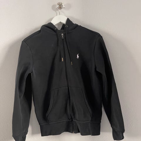 Ralph Lauren Polo hettejakke i størrelse xl gutt passer som S for menn. Jakken er grå og laget av bomull. Den har glidelås foran og hette, samt den karakteristiske Ralph Lauren-logoen brodert på brystet.