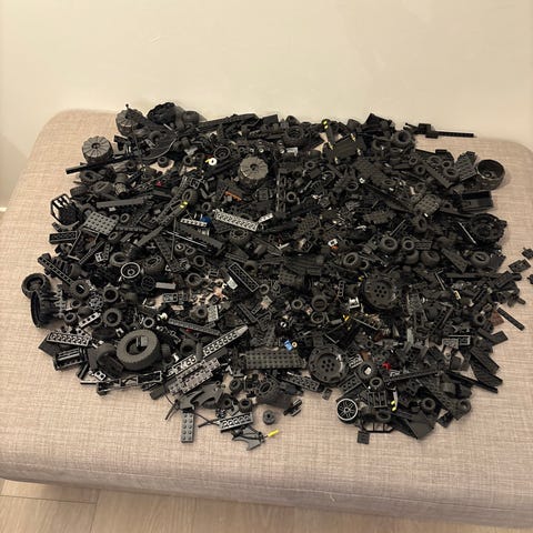 LEGO byggeklosser sortert utvalg hovedsakelig i rødt. Inneholder et variert utvalg av røde klosser i forskjellige størrelser og former. Egnet for bygging og kreativ lek.