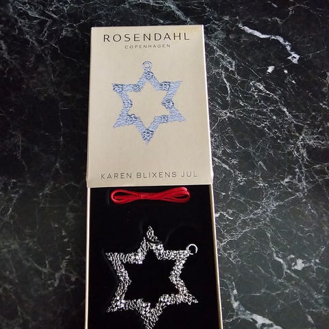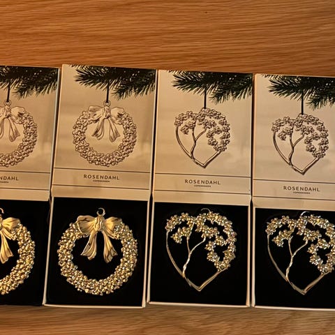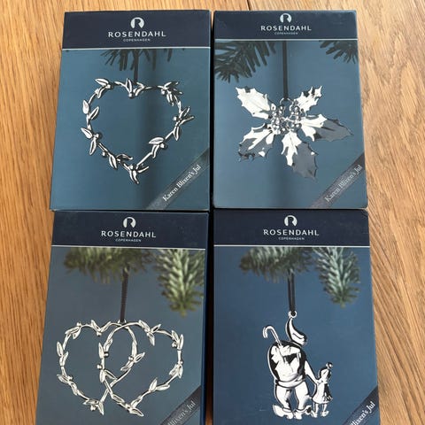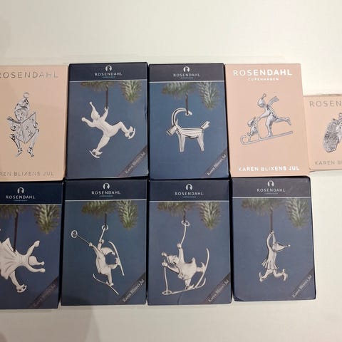 16 ulike karen Blixen julepynt, Rosendahl sølvfarget, 3500,-kr samlet