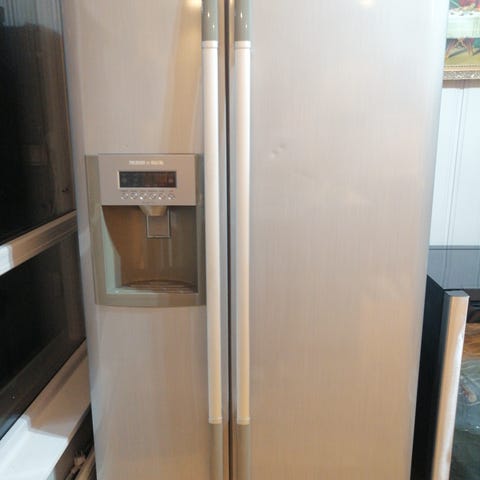LG Side-by-Side kjøleskap med dobbel dør og isbit- og vannautomat. Rustfritt stål utførelse.