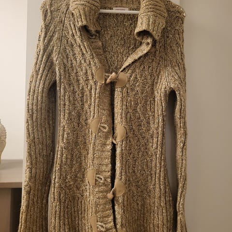 Dette er en myk og kløfri Dagmar jakke i 100 % merino ull. Det er ikke brukt, kun prøvd på. Den er merket M, men den er mer som small. Fargen er dus beige/gammelrosa som går godt til mange andre farver.