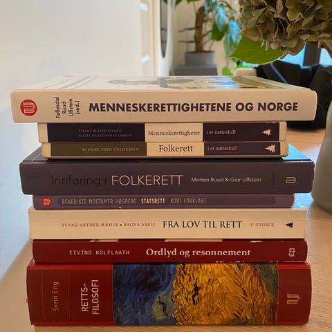 Pensumbøker til jus2111 Statsrett, folkerett og menneskerettigheter. Bøkene er som ny, uten markeringer.