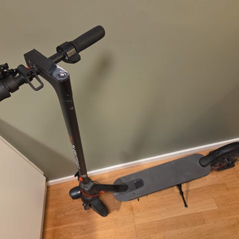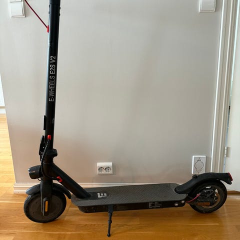 E-Wheel E2S Junior elektrisk sparkesykkel med digitalt display. Modellen har en kompakt design, egnet for yngre brukere eller som en juniormodell. Fargen er svart med røde detaljer. Hastighet max 15km/t. Den er lite brukt. Må hentes