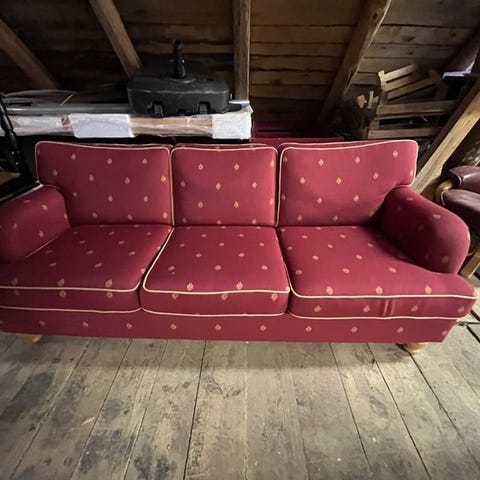 Strøken sofa gis bort mot henting snarest. Har bein til sofaen, som ikke er skrudd på.