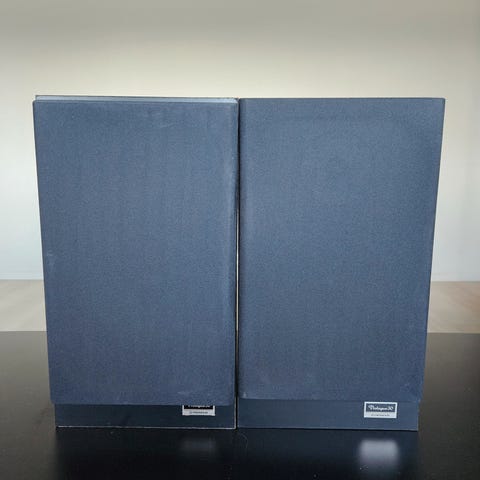 Marantz Model LD60 vintage høyttalere med svart kabinett. Tre-veis høyttalersystem med diskant og bass/mellomtone-element. Anbefalt forsterker 30-120 watt. Tilkoblinger for høyttalerkabler på baksiden.