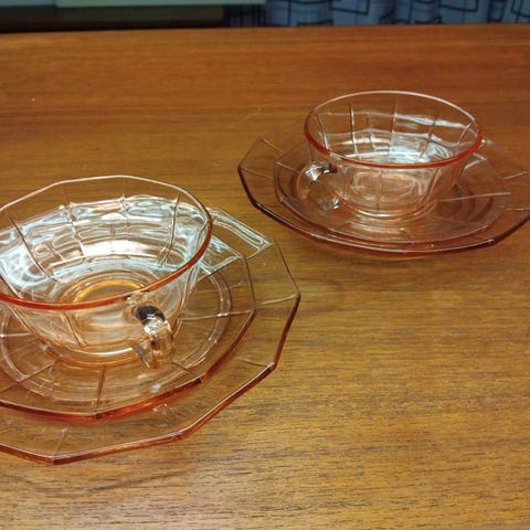 Jeg selger disse to pene gjenstandene i gult glass samlet for 80 kr, altså 40 kr pr stk.