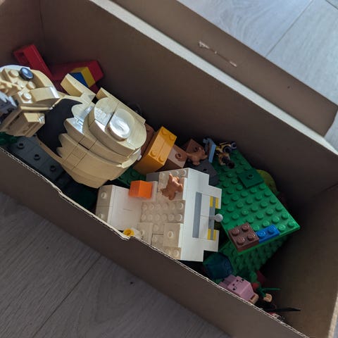 En del Lego, blant annet minecraft Lego og mye aent forskjellige. Datteren min selger det på grunn av hun holder ikke på med Lego mer.