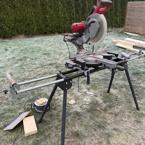 Pent brukt Dewalt kapp og gjærsag selges med stativ. Blad 216mm. Stativet er sammenleggbart.