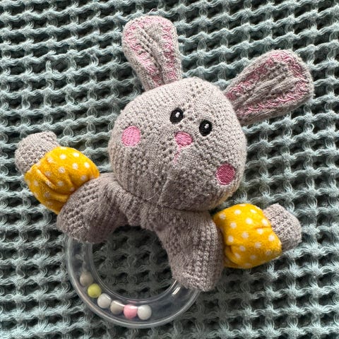 Helt ny biteleke/rangle til baby. Hentes hos meg eller sendes mot betaling av frakt. Liker du flere av mine annonser kan jeg lage pakkepris :-)