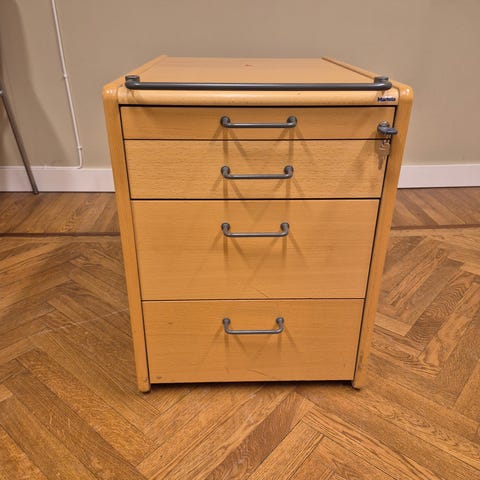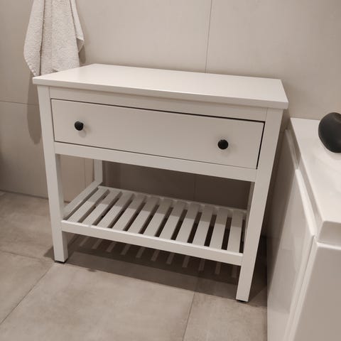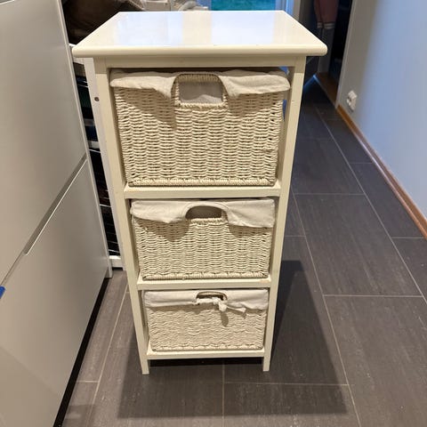Selger en hvit, moderne og praktisk kommode med 4 romslige skuffer – perfekt til soverom, gang, barnerom eller kontor.