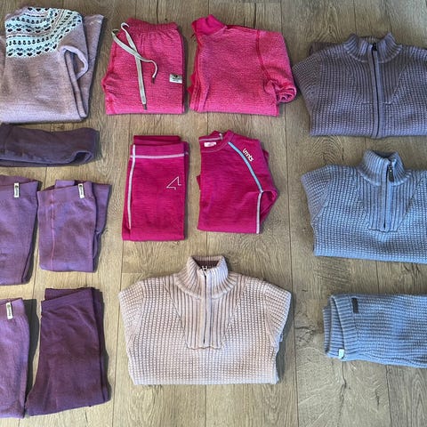 Farge: Rosa/lilla med mønster.