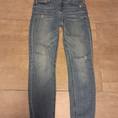 Klassiske jeans fra Fransa denim med rette ben. Str 38. Livvidde 80 cm, livhøyde 24 cm indre beinlengde 80 cm. Pent brukt uten synlig slitasje