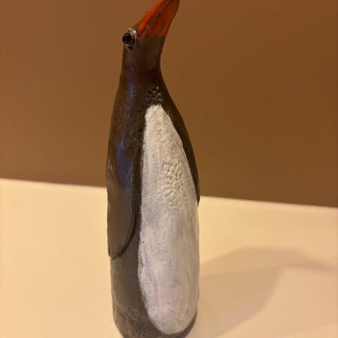 Selger 3 trefigurer formet som katter. Dekorative figurer med lange haler og fine detaljer. Fremstår som pent brukt, normale bruksspor. Passer fint som interiørpynt.