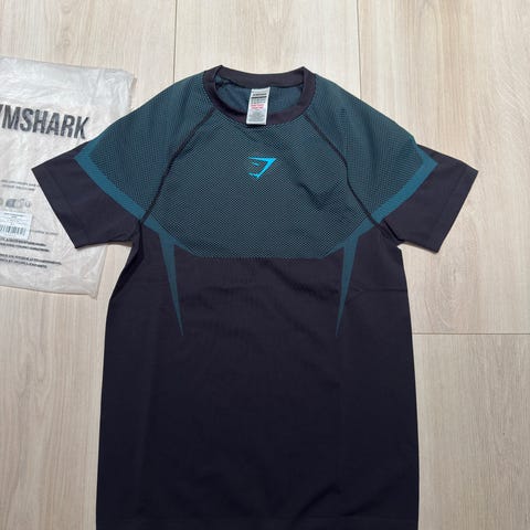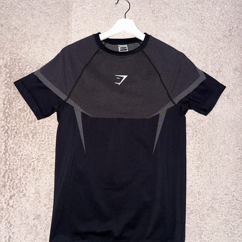 Hei, jeg selger Gymshark Onyx 5.0 Compression long sleeve shirt som er svart og rød i størrelse S.