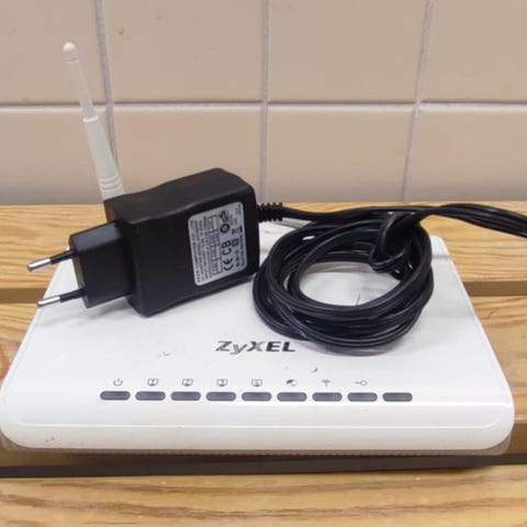 Zyxel Router med tilhørende strømadapter. Enhet for nettverksforbindelse.