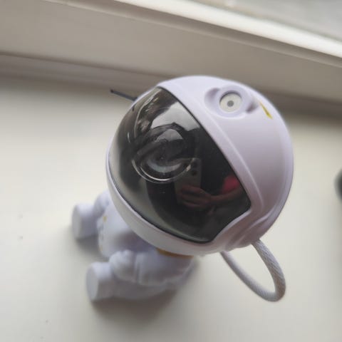 Astronauten er 25 cm høy. Knappene på baksiden fungerer ikke, men det er greit, for den fungerer fortsatt utmerket.
