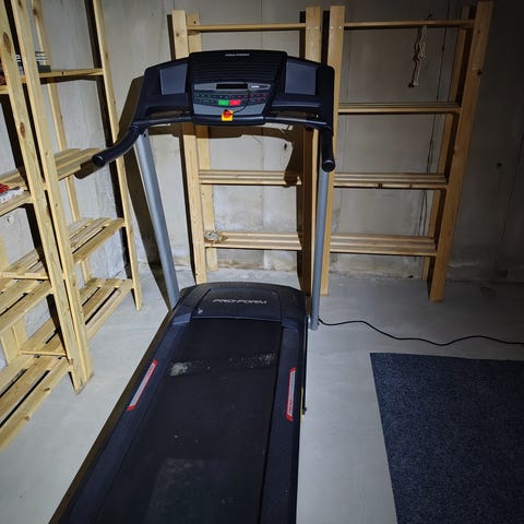 S Line 850 tredemølle med løpebånd, designet for hjemmebruk eller treningssentre. Utstyrt med kontrollpanel og solide håndtak for støtte under trening. Passer for generell kondisjonstrening og gå-/løpeøkter.