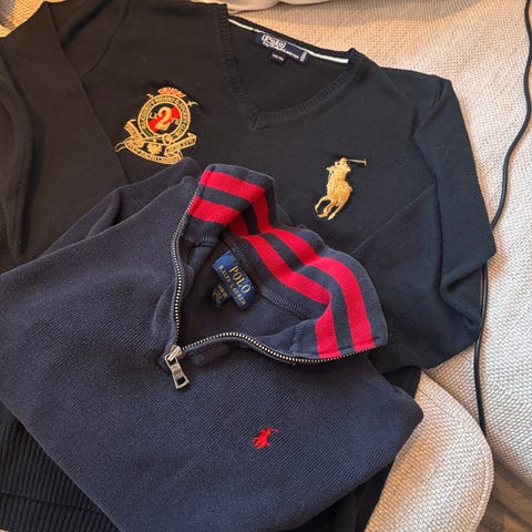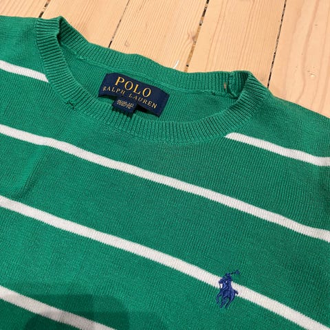 Ralph Lauren Polo langermet genser i størrelse M (10-12) for gutt. Langermet pique. Har en liten flekk, se bilde 5. Nypris 1100