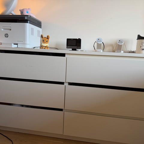 The kommode is in good overall condition. One drawer is missing the bottom panel, but all other drawers are in good working order.