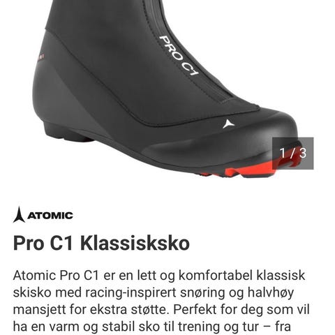 Kjøpt nye i desember 2025 hos Bull Ski og Kajakk, og prøvd på en kort skitur. Skoen er for stor for brukeren, derfor selges.