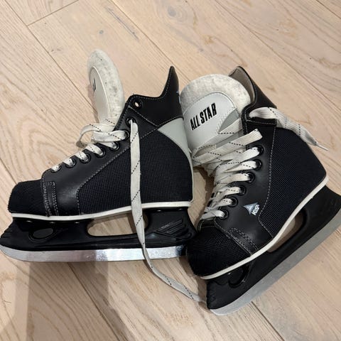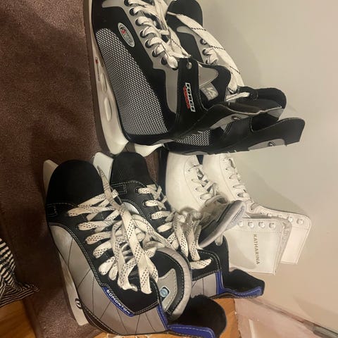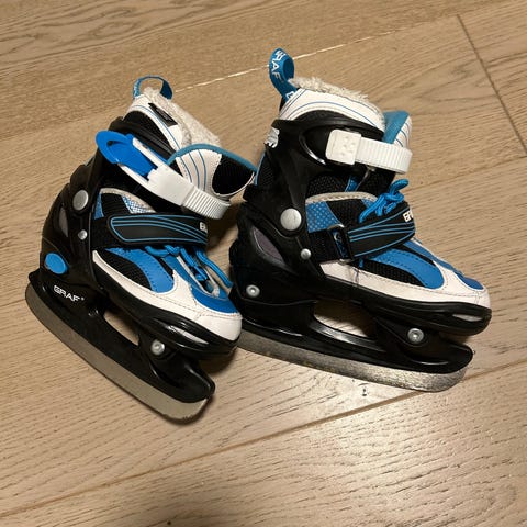 Graf Ishockey skøyter i barnestørrelse 31-34. Skøytene har hvit og lilla fargekombinasjon og er designet for ishockeybruk.