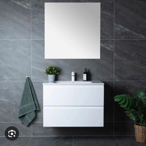 2 stk hvite overskap til bad med hyller. Kan følge med speil etter avtale. Følger ikke med lyset over speilet på bildet.
