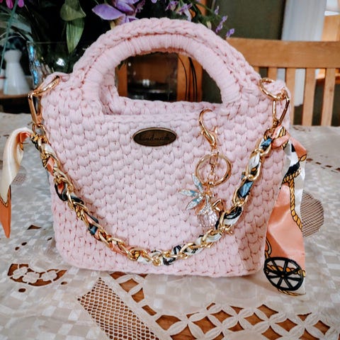 Håndlaget svart heklet veske med kort håndtak og avtakbar skulderrem. Vesken har en solid struktur med en flat bunn og metallbeslag for stabilitet. Materialet er tykk, svart garn, og vesken har en dekorativ hjerteformet anheng. Egnet for daglig bruk og som et tilbehør til ulike antrekk.