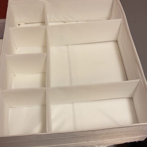 Materiale: Hyllen er laget av gjennomsiktig plast og har to åpne skuffer.