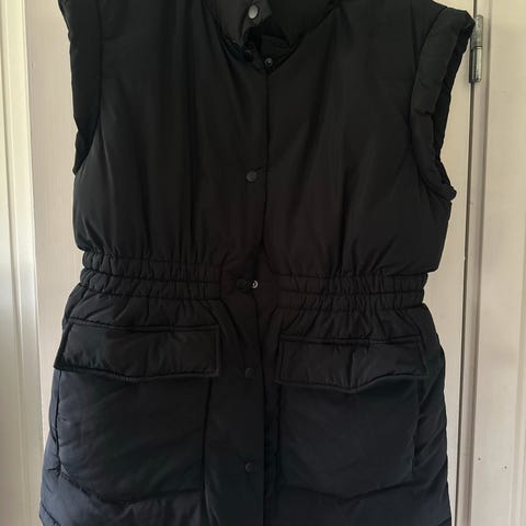 Selge denna nydelege svarte vesten her fra Vero Moda i strl L. Vesten er som ein tynn boblejakke med glidelås og glidelås lommer . Passer fint til ein genser under. Vesten har ingen bruksmerker