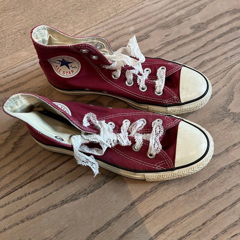 Converse Sneakers joggesko i størrelse 40. Skoene har en svart og hvit fargekombinasjon og klassisk design med snøring. Yttersålen er av gummi, og skoene er laget for hverdagsbruk.