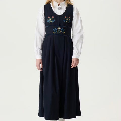 Pen bunad med hette. Brodert av min bestemor. Tre bunadsskjorter og underskjørt følger med.
