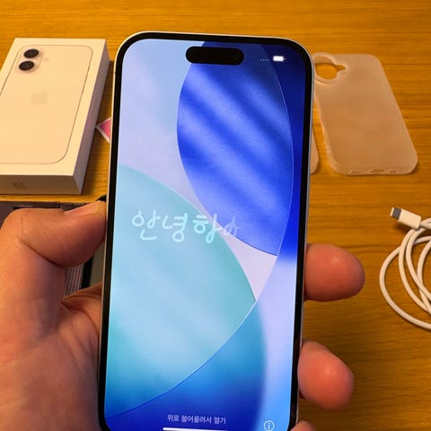 Apple iPhone 16 med 128 GB lagringskapasitet. Telefonen leveres med original lader og eske. Fargen på telefonen er svart. Modellen har en kompakt og moderne design.