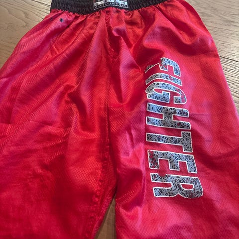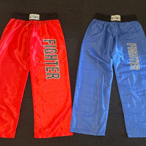 Fighter Kampsportbukser for menn i størrelse S. Bukser i rød farge, egnet for kampsportaktiviteter. 160cm Lenge, brukt 1 eller 2 ganger.