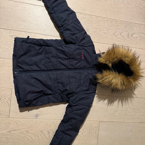 Noen flekker på frontlommer og klaff, pga misfarget i vask.