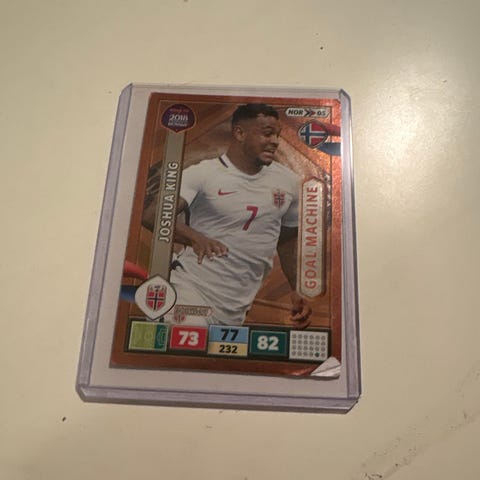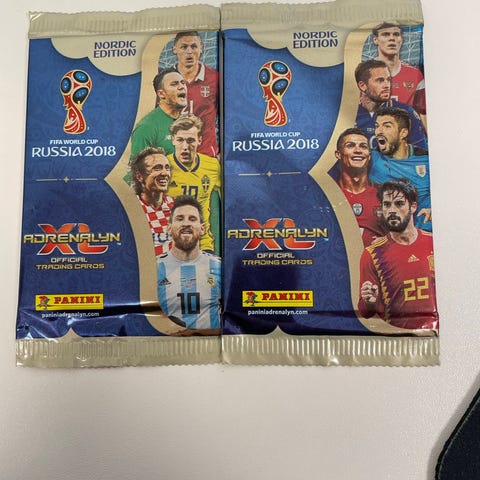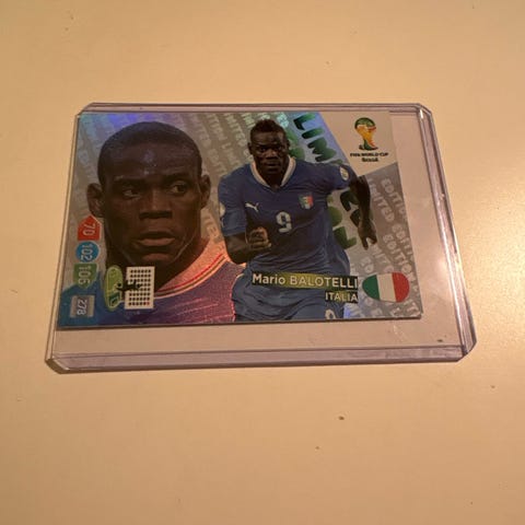 Panini FIFA World Cup 2014 samlekort med motiv av fotballspillere og offisielt FIFA World Cup 2014 design. Kortet er innkapslet i plast for beskyttelse.