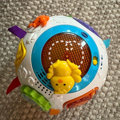 Vtech krabbe- og læreball er full av morsomme ting å ta på, vri og trykke på, og den introduserer former, tall, dyr og dyrelyder.
