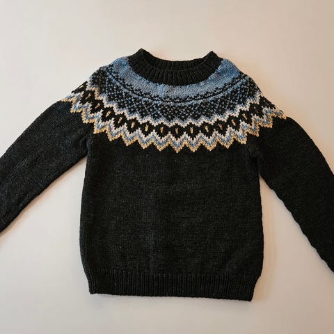 Hjemmestrikket ullgenser str 2-4år. Mønster Norges Drøm