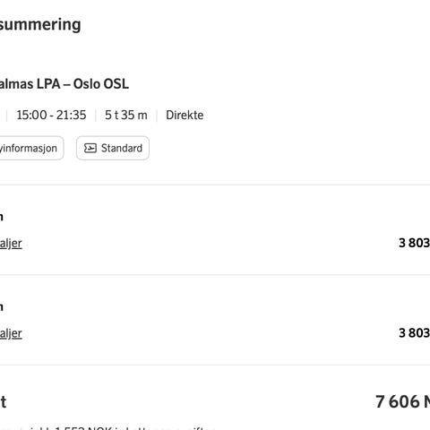 Flybillett med Scandinavian Airlines fra Oslo OSL Terminal til destinasjon SK 4705. Inkluderer 1 liten veske under setet, 1 håndbagasje og 1 innsjekket bagasje. Avgangstid 17:10, varighet 3 timer og 15 minutter.