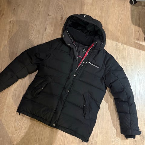 Peak Performance dunjakke i blå farge, størrelse XL for dame. Jakken er laget av dun veldig varm å god.