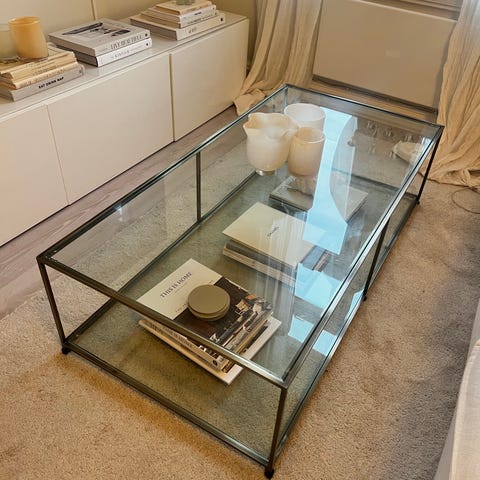 • Sofabord med glassplate og praktisk underhylle