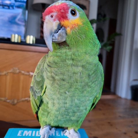 Hun bråker lite, men liker å høre seg selv innimellom. Det må en faktisk tåle med en papegøye i hus.