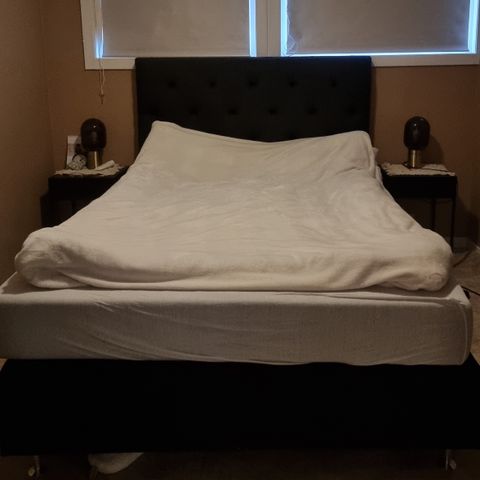Selger en 140 cm bred seng fra JYSK som har stått på et jenterom i ca. 2 år. Sengen har alltid vært brukt med madrassbeskytter og overmadrass, og fremstår som ren, pen og godt ivaretatt.