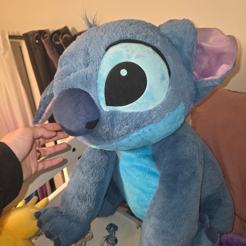 Disney Stitch kosedyr i blå farge. Veier ca. 1.5kg. Kjøpt i Disneybutikken i Oxford i London i 2022. Oppbevart i røykfritt hjem.